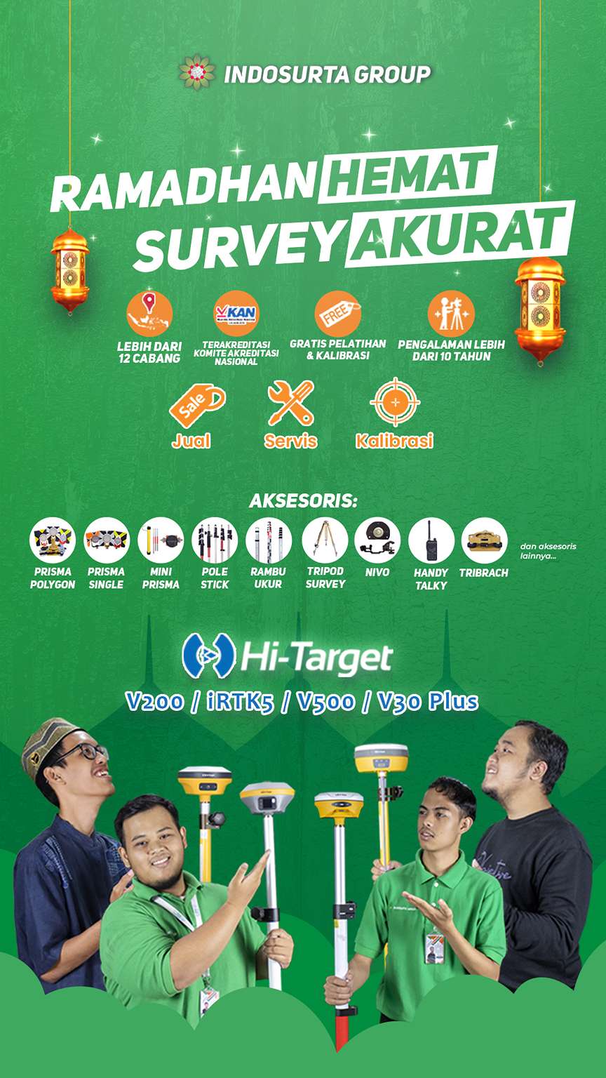 Indosurta Medan jual berbagai macam alat survey seperti Total Station, Theodolite Digital, Automatic Level Waterpass, GPS Geodetic GPS Map, dan Laser Level. Setiap pembelian alat di Indosurta Medan akan menadapatkan garansi resmi servis dan juga kalibrasi 1 tahun, serta gratis training alat.